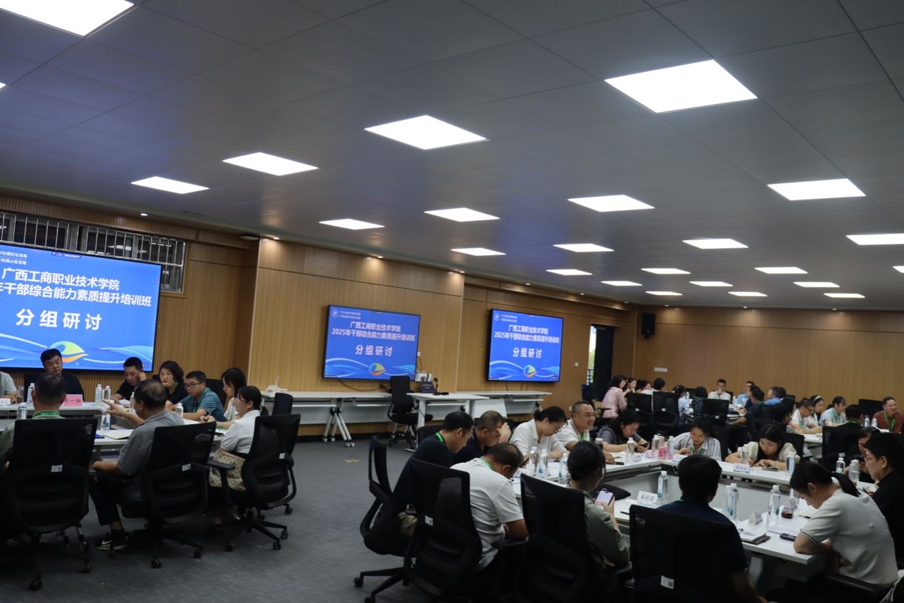 本次培训紧扣学校发展大局和干部队伍建设需求,精心设计课程,采用专题教学、现场教学、分组研讨等多种形式。专题教学聚焦核心能力,邀请专家深入解读党的作风建设、教育强国建设、网络意识形态安全、人工智能工具应用(DeepSeek、豆包等)、领导干部压力管理及“双高”建设实践等专题,有效夯实学员理论基础与履职能力。现场教学组织学员赴桂林古莲文化街、广西党风廉政教育基地(桂林)开展廉政教育;参观桂林电子科技大学人工智能成果与教育教学展厅,学习借鉴“人工智能+”领域先进经验。分组研讨环节,组织学员们围绕“人工智能背景下,如何将人工智能融入学校党建工作、教育教学工作全过程”主题,结合岗位实际深入交流,碰撞思想火花,实现互学互鉴。