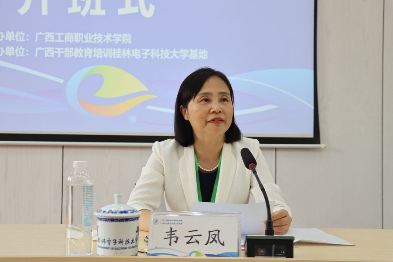 开班式上,桂林电子科技大学党委副书记聂慧代表桂林电子科技大学和广西干部教育培训桂林电子科技大学基地致欢迎词。她对全体学员表示热烈欢迎,并简要介绍了桂林电子科技大学及广西干部教育培训基地的基本情况与培训班的安排,希望学员们珍惜学习机会,认真参与,并预祝培训班取得圆满成功。